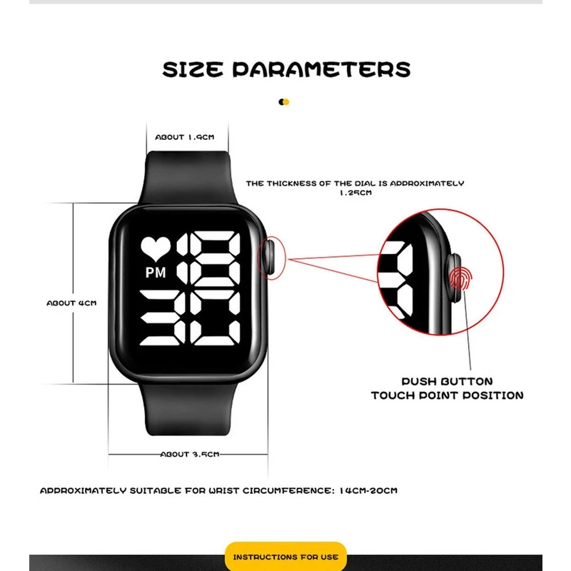 Funções especiais: luminoso, calendário, indicação de 24 horas, exibição de mês Tipo de exibição: número Pessoas aplicávels: geral Estilo: Coreano, negócios, lazer, esportes À prova d'água: Sim Desempenho impermeável: 50m Tipo de movimento: eletrônico Origem de movimento: China Diâmetro do mostrador: 35mm Espessura: 12,5mm Tipo de coroa: guarda coroa, guarda ponte Estilo fecho: fivela de cavalo Material da fivela: fivela de borracha Material da cinta: PU Forma do mostrador: quadrado Material da caixa: material ABS de alta qualidade Especificação da embalagem: OPP A cor real do item pode ser ligeiramente diferente das fotos mostradas no site, causadas por muitos fatores, como o brilho do monitor e o brilho da luz. Tamanho da tela: 1,2 polegadas Método de vestir: cinta de pulso Modo de operação: toque Peso do produto: 0.023KG Listando Homem/season: Verão de 2021